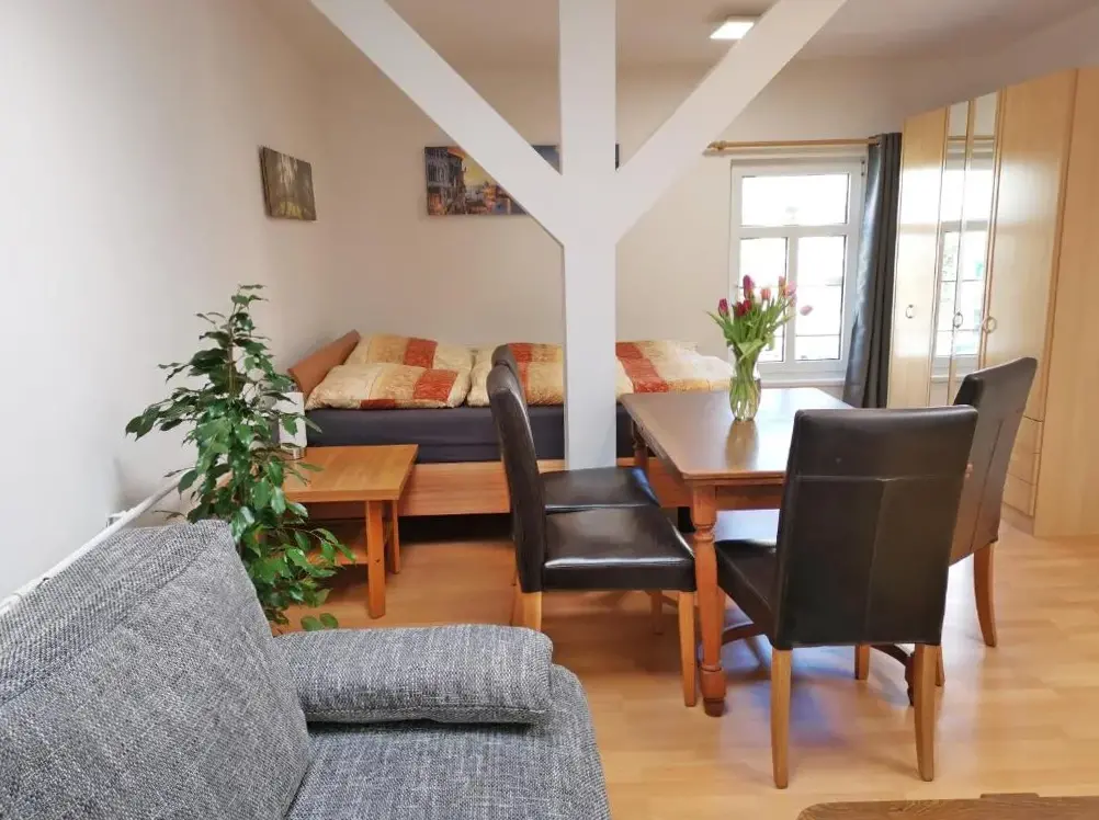 Musashi Apartment 2 se encuentra situado en la dirección 66A Erfurter Straße, 99423 Weimar, Alemania. Este apartamento amplio y modernamente renovado ofrece comodidades tales como WiFi gratis, gimnasio y estacionamiento gratuito. El alojamiento dispone de una cocina completa con electrodomésticos modernos, así como un baño privado y una zona de estar con balcón que proporciona vistas a la ciudad. La ubicación estratégica permite acceder fácilmente a lugares turísticos importantes como el Teatro Nacional Alemán Weimar, a menos de medio kilómetro de distancia, y al Museo Bauhaus Weimar, accesible en diez minutos caminando. Además, los huéspedes pueden aprovechar las instalaciones de transmisión disponibles y utilizar la lavadora para sus necesidades diarias.